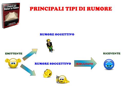 Possiamo avere due principali tipi di rumore: quello OGGETTIVO, che viene dall’ambiente e dalla vita che circonda il contesto comunicativo e quello SOGGETTIVO: la distrazione!